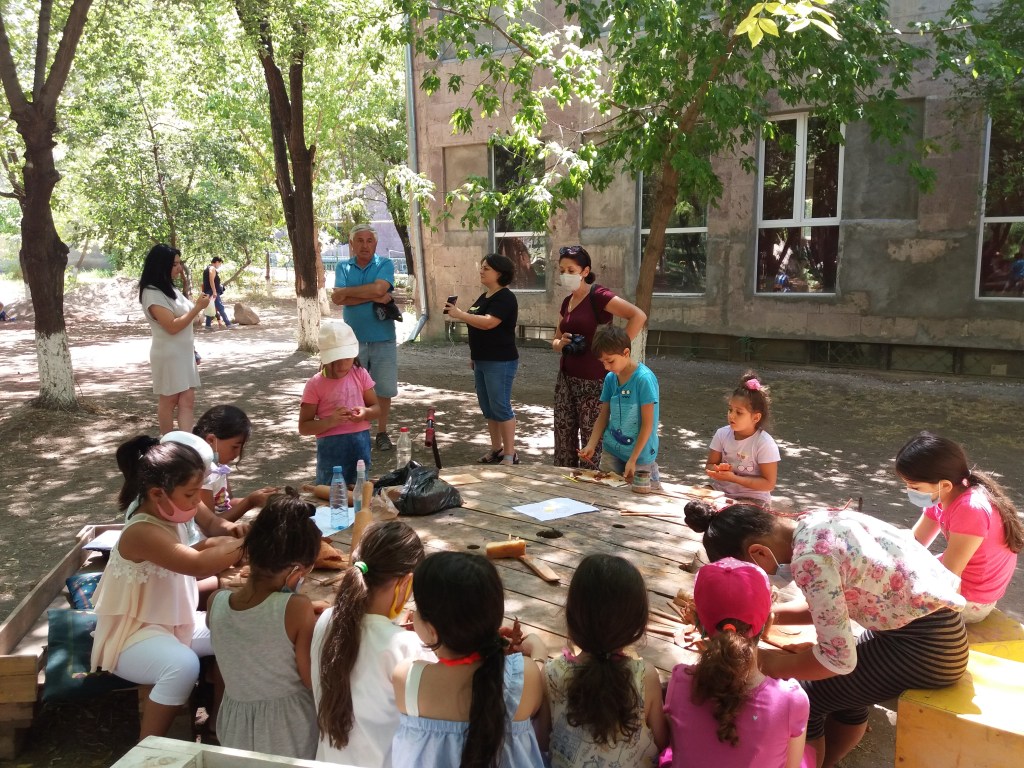Նախաճաշից հետո ճամբարականների հետ գնացինք փառատոնային պուրակ՝ կավագործության։