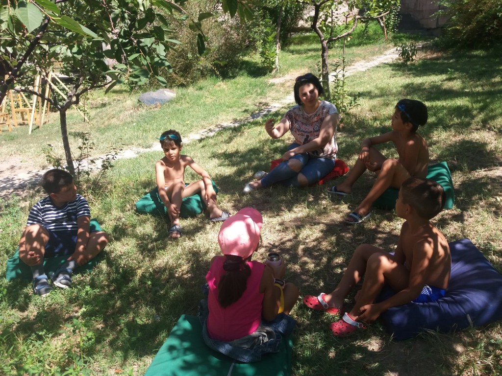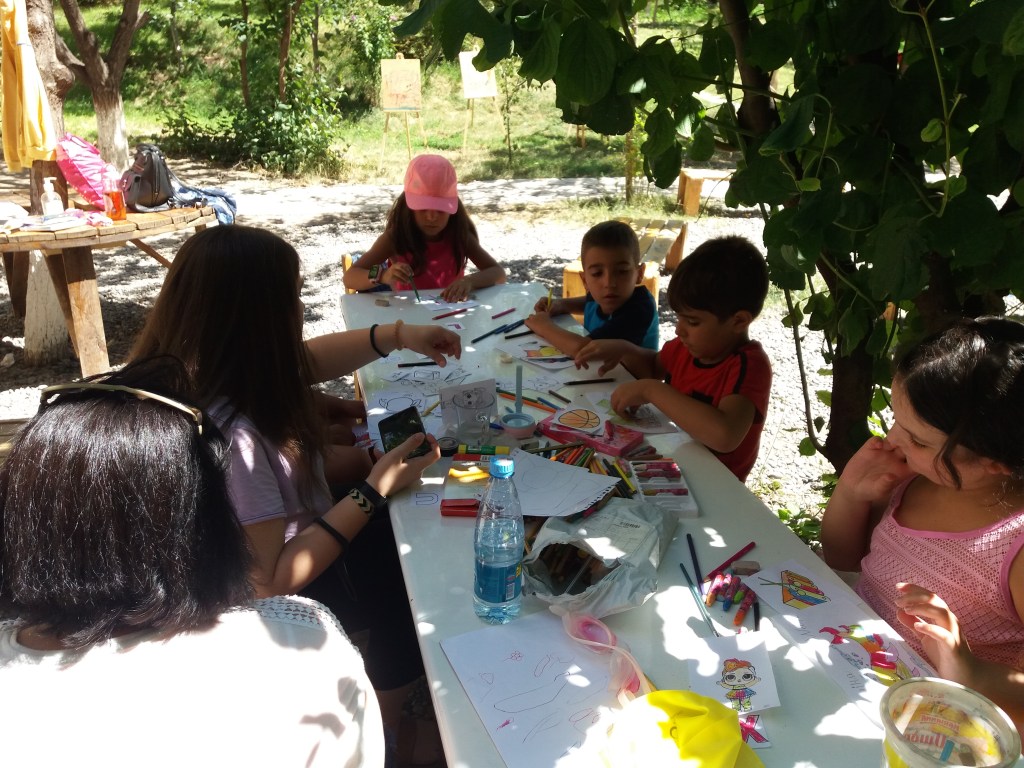 Ճամբարականները ուրախ օտար լեզու արեցին կամավոր Անի Հակոբյանի հետ, ներկեցին պատկերներ և սովորեցին անգլերեն դրանց անվանումները։