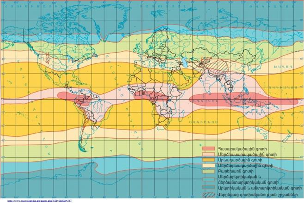 Կլիմայական գոտիների համառոտ բնութագիրը